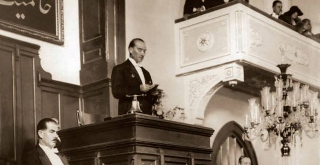 TBMM’de Nutuk’u okurken, Ankara 15-20 Ekim 1927.